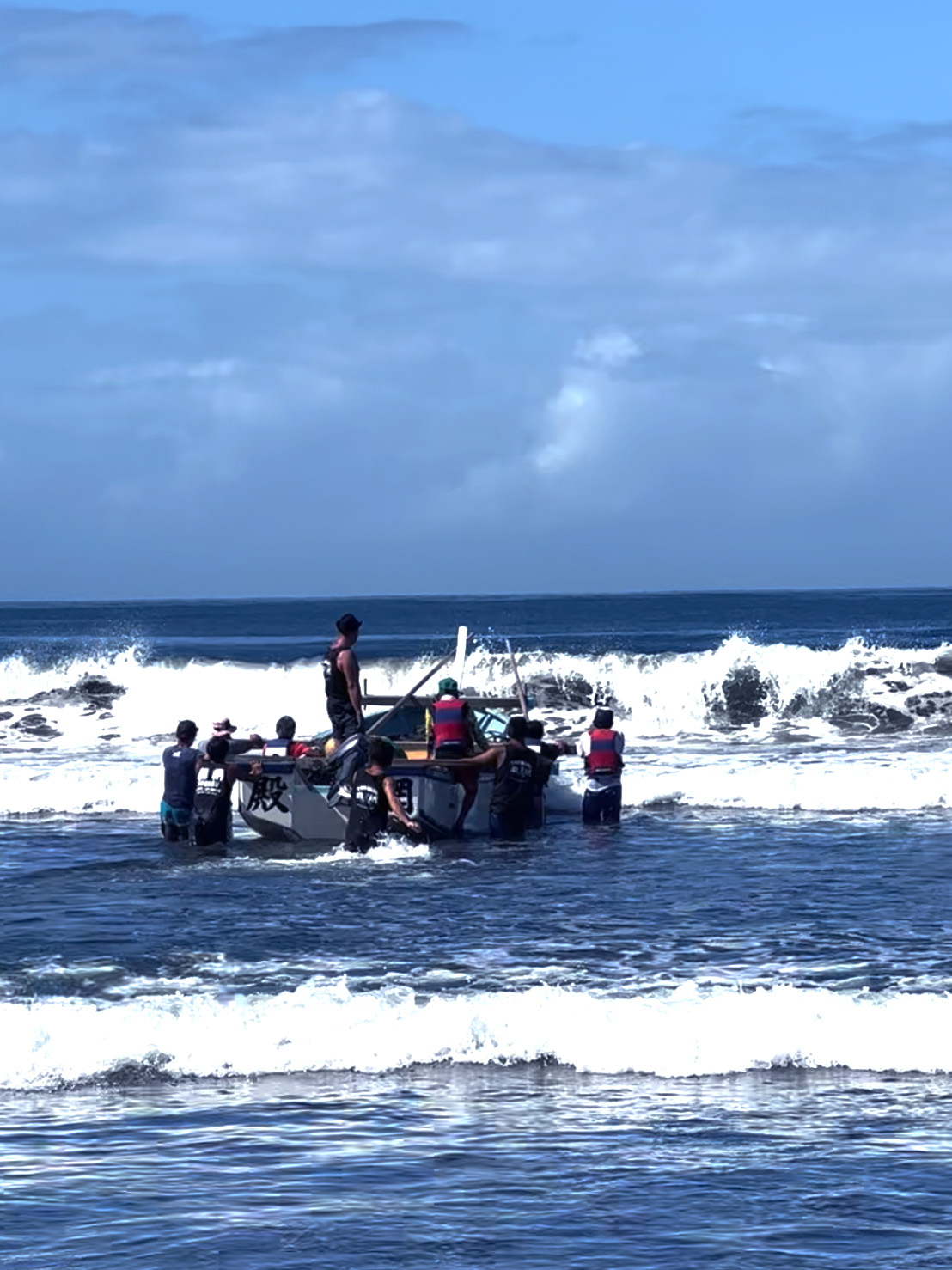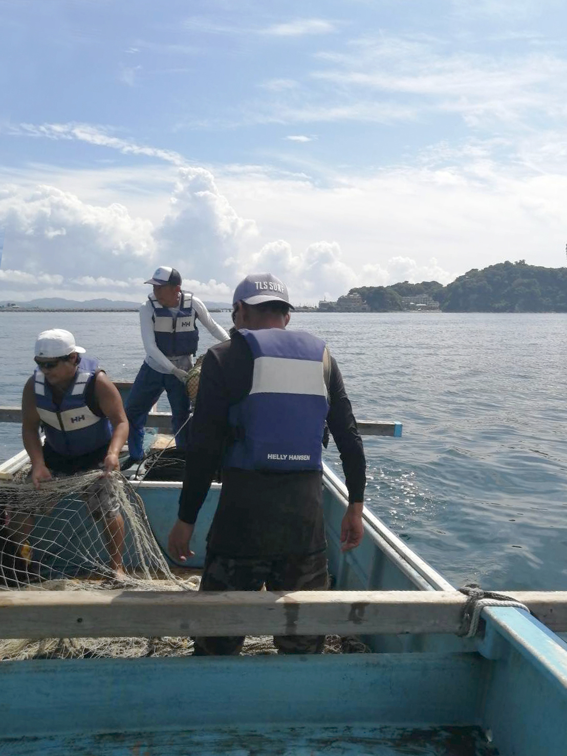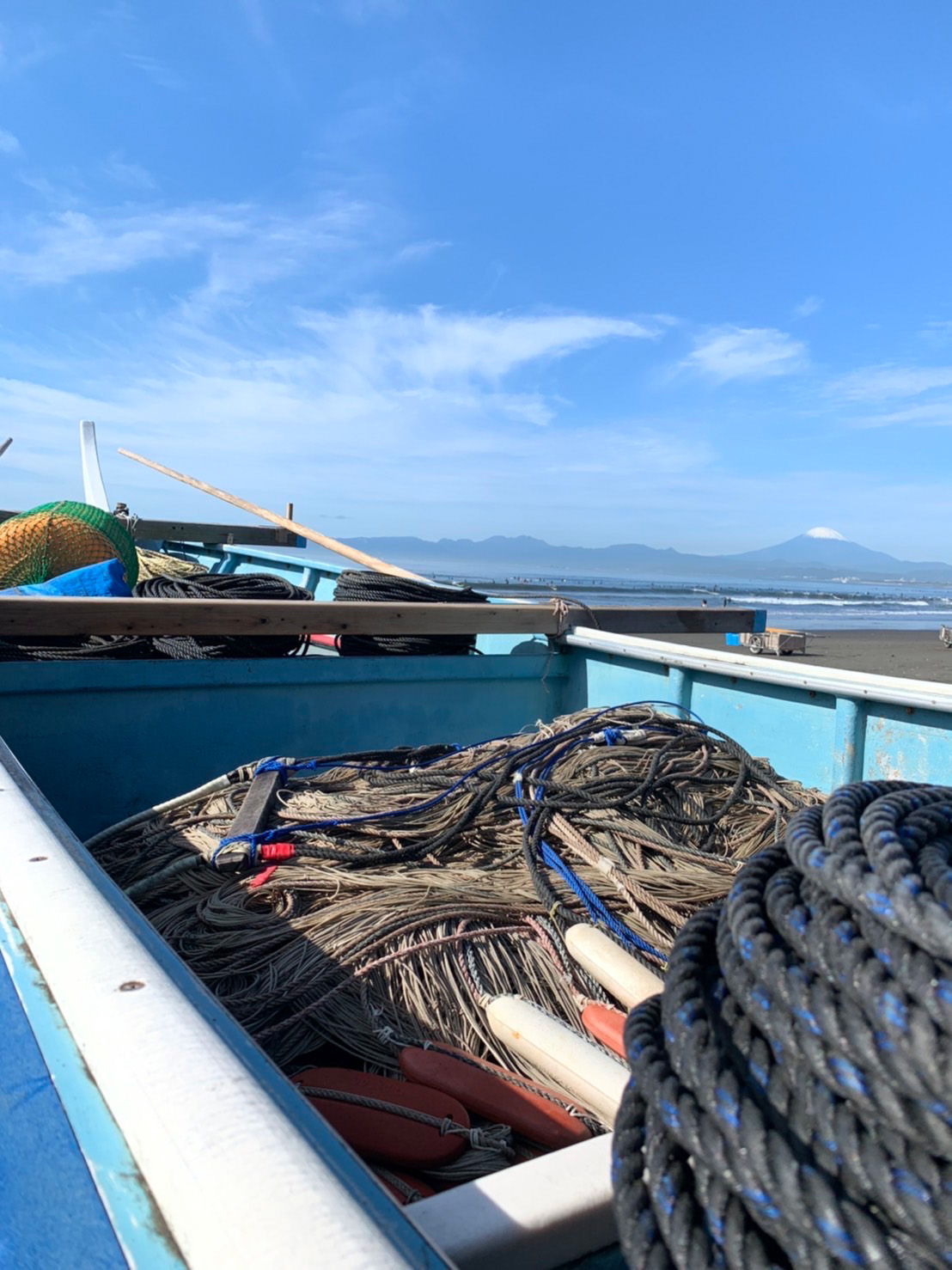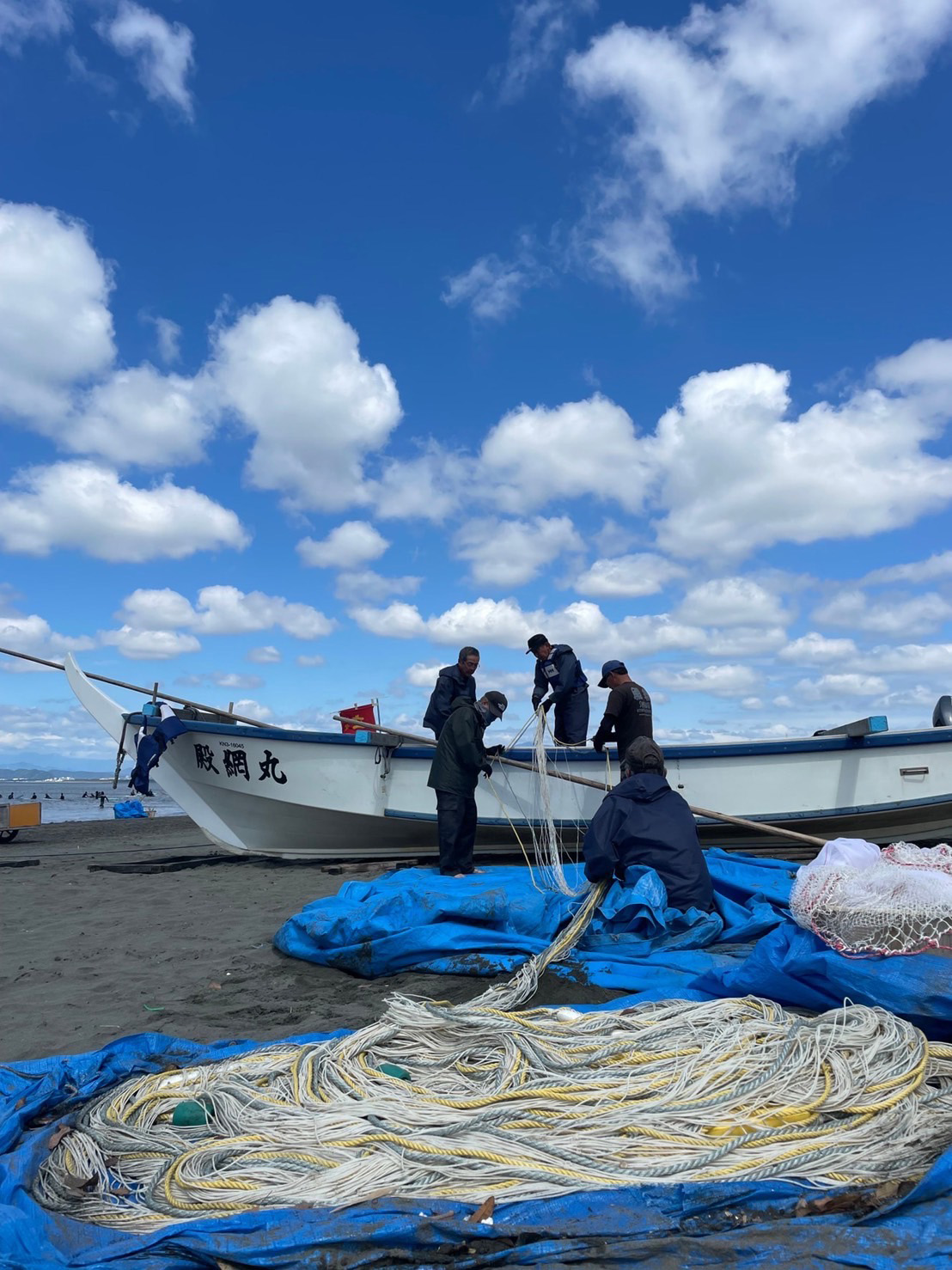 - 殿網の漁師達が網の準備をし沖へ船を出します。